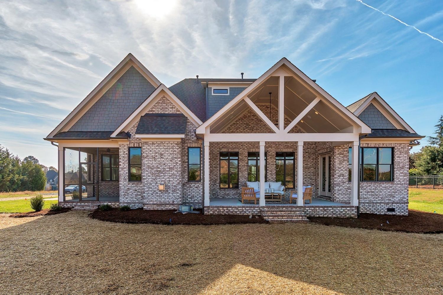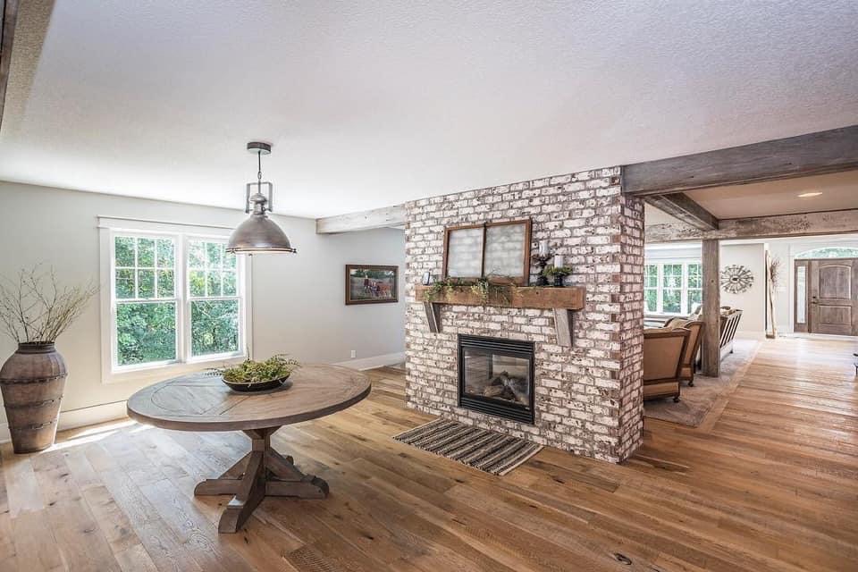 Distressed red brick with a heavy cream limewash finish for a vintage, handcrafted aesthetic.