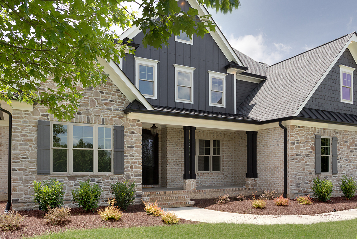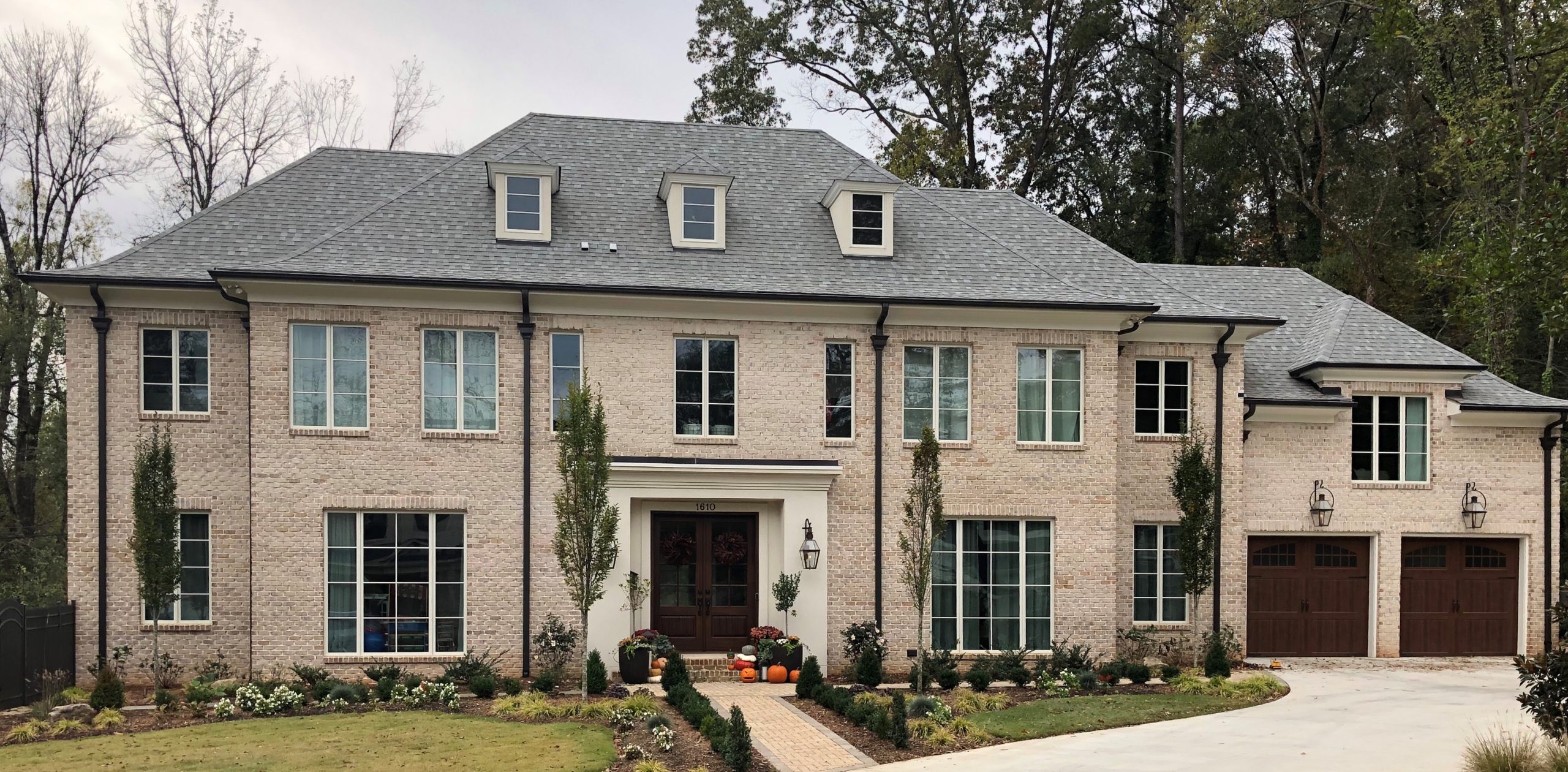 White-washed pearl with blue-gray accents for vintage, old-world charm.