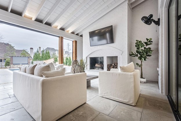 Extend your home's comfort outdoors with brick and stone transitions that blur the lines between inside and out. Your guests can flow naturally between spaces – grabbing snacks inside, watching the game outside.
