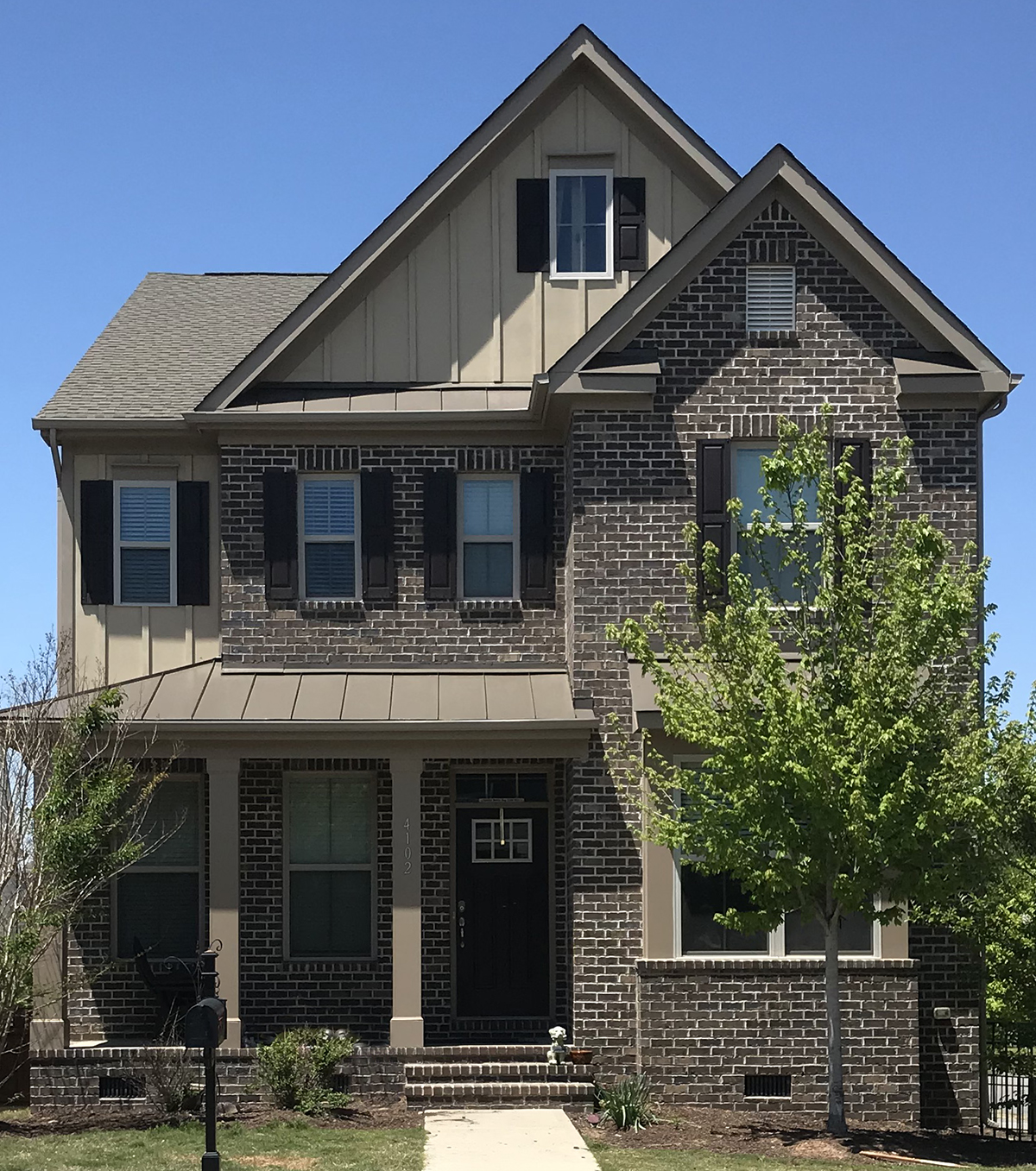 Burnt umber with cream and sepia tones for a warm, small-town sophistication.
